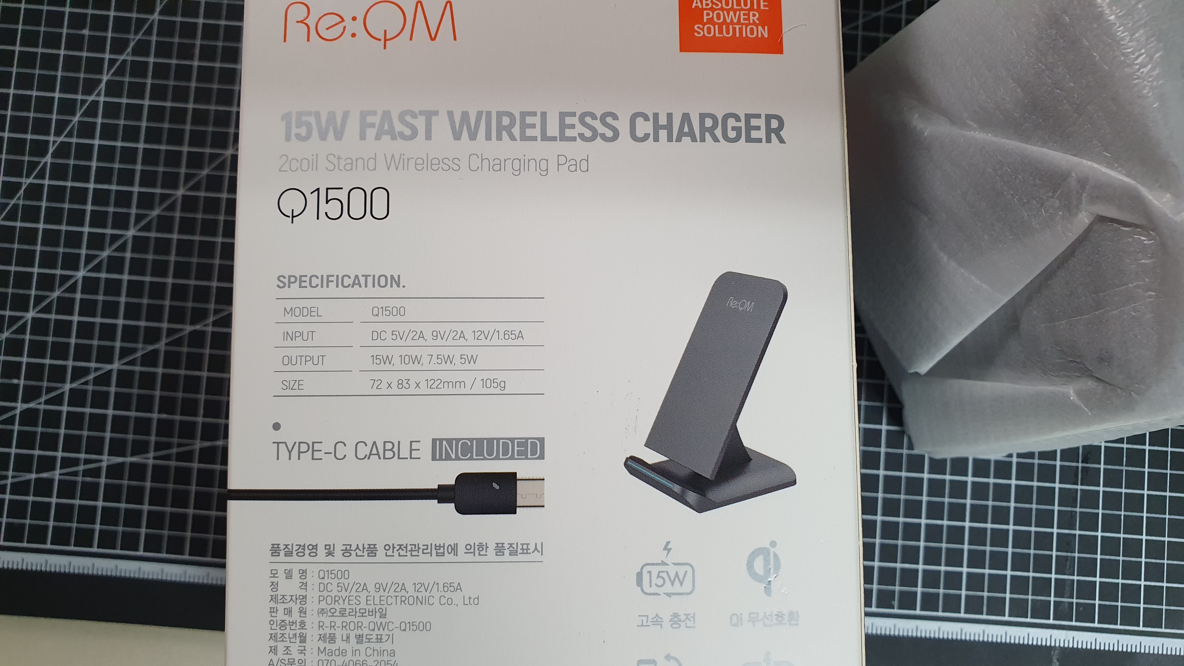 리큐엠 15W 초고속 무선충전기 폴더블 타입 QWC-L1500 블랙